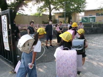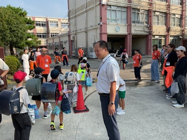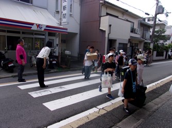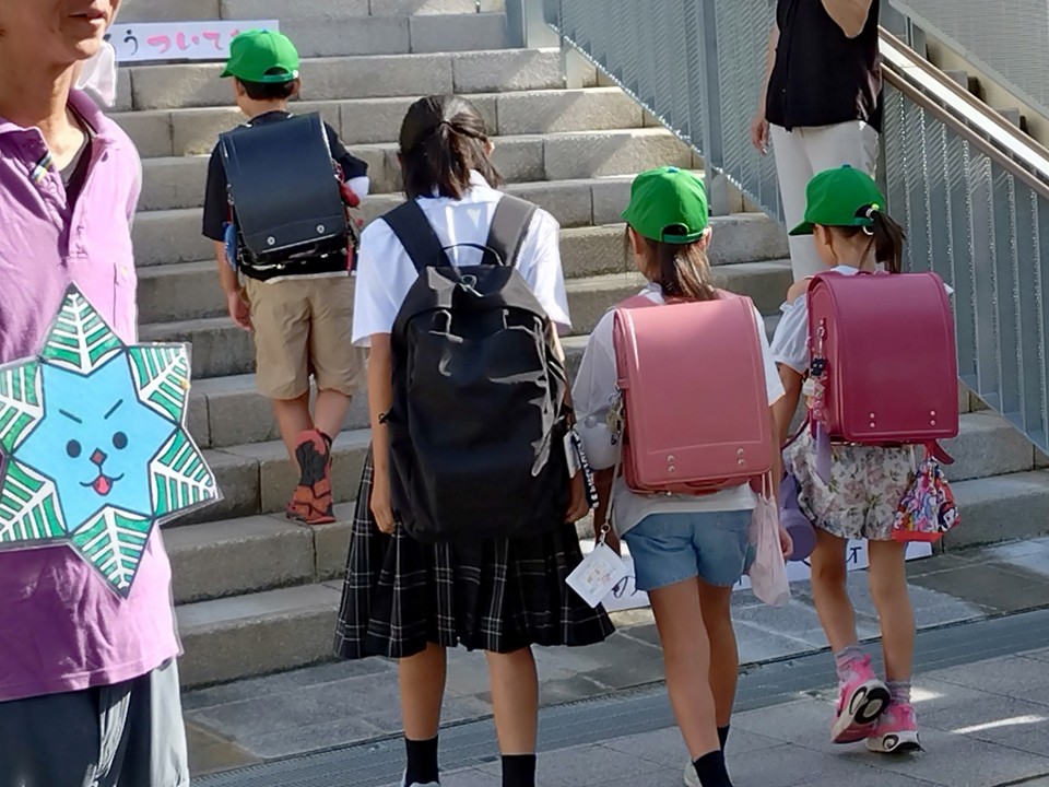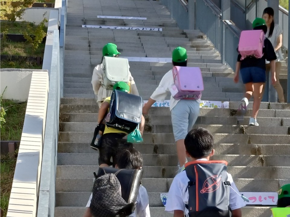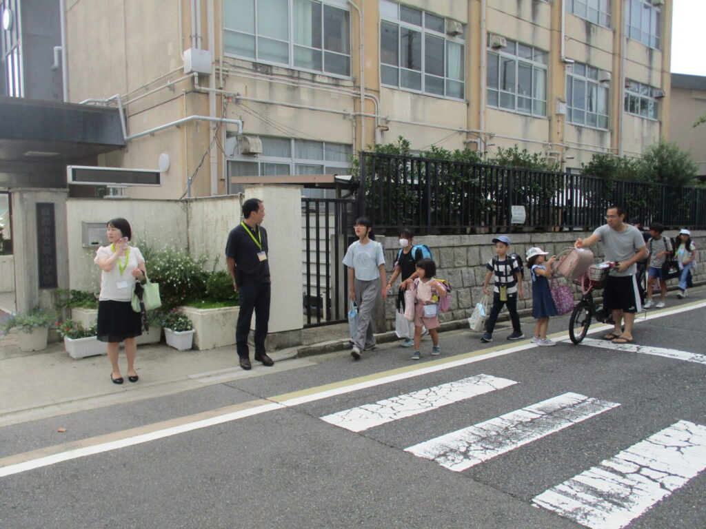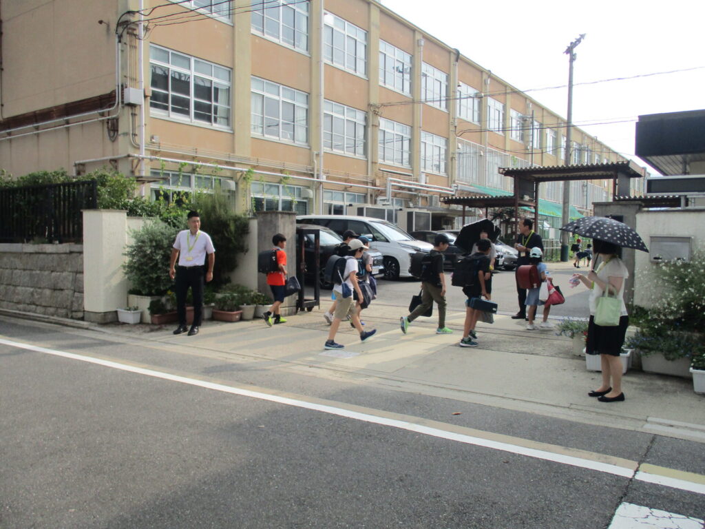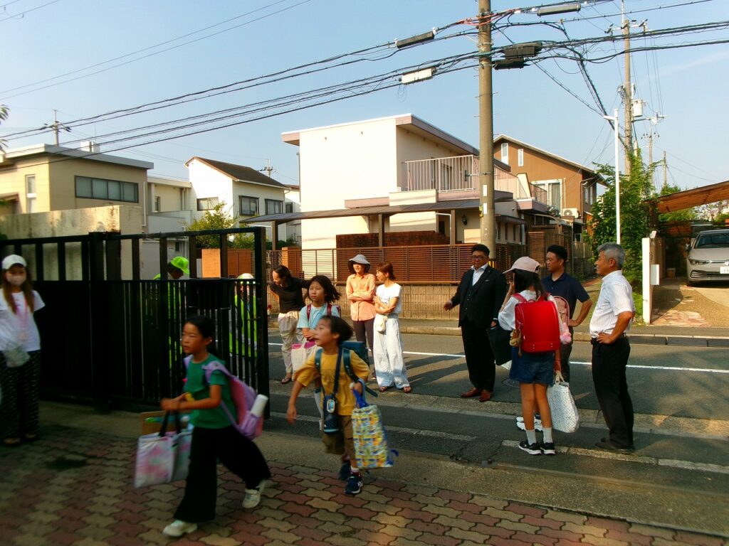 朝の気温は8時の時点で30度近くとなり、日傘をさす子もいました。1年生は1学期までの必死について歩く様子から少し余裕を感じる足取りに成長を感じることができました。