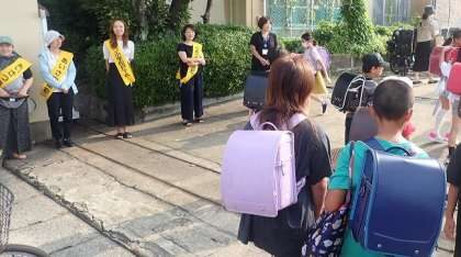 2学期の始業式の朝、地域委員であいさつ運動を行いました。正門をはじめ、通学路の数か所に立ち、子どもたちに「おはようございます!」と声をかけました。子どもたちから返ってくる元気な声や笑顔に、私たちもパワーをもらいました!